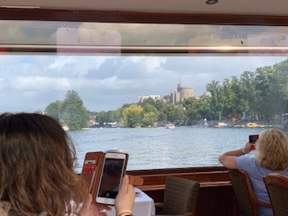 On Saturday 'Five went mad in Windsor'. I met up with Poppy, Sheila, my mother in law, my sister in law, Debbie and her friend Lisa who were both over from Perth Australia and I drove us to Windsor. We unfortunately hadn’t picked up tickets for Windsor Castle before hand and the queue stretched right down the road, so we didn’t get to go in, until we heard that we could join an evening song session in the chapel. Unfortunately, it wasn’t until we got in that we were told that it was only prayer and not songs as we had hoped, so we made a quick exit. Before that we had had a lovely afternoon tea on a boat watching the world go by and seeing beautiful white swans, Ascot racecourse as well as Eaton college. All very green and beautiful with only a little rain. The next day we all went to Bombay Sapphire Distillery set in beautiful converted 1000 year old Mill in Whitchurch and experienced the Gin Masterclass. Great experience even if you are driving!